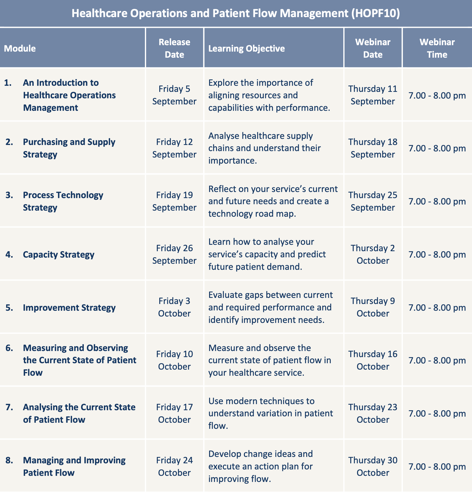 In our opening module we explore what healthcare operations management is and why the performance it results in can make or break a healthcare organisation or service. The topics covered in this module include: