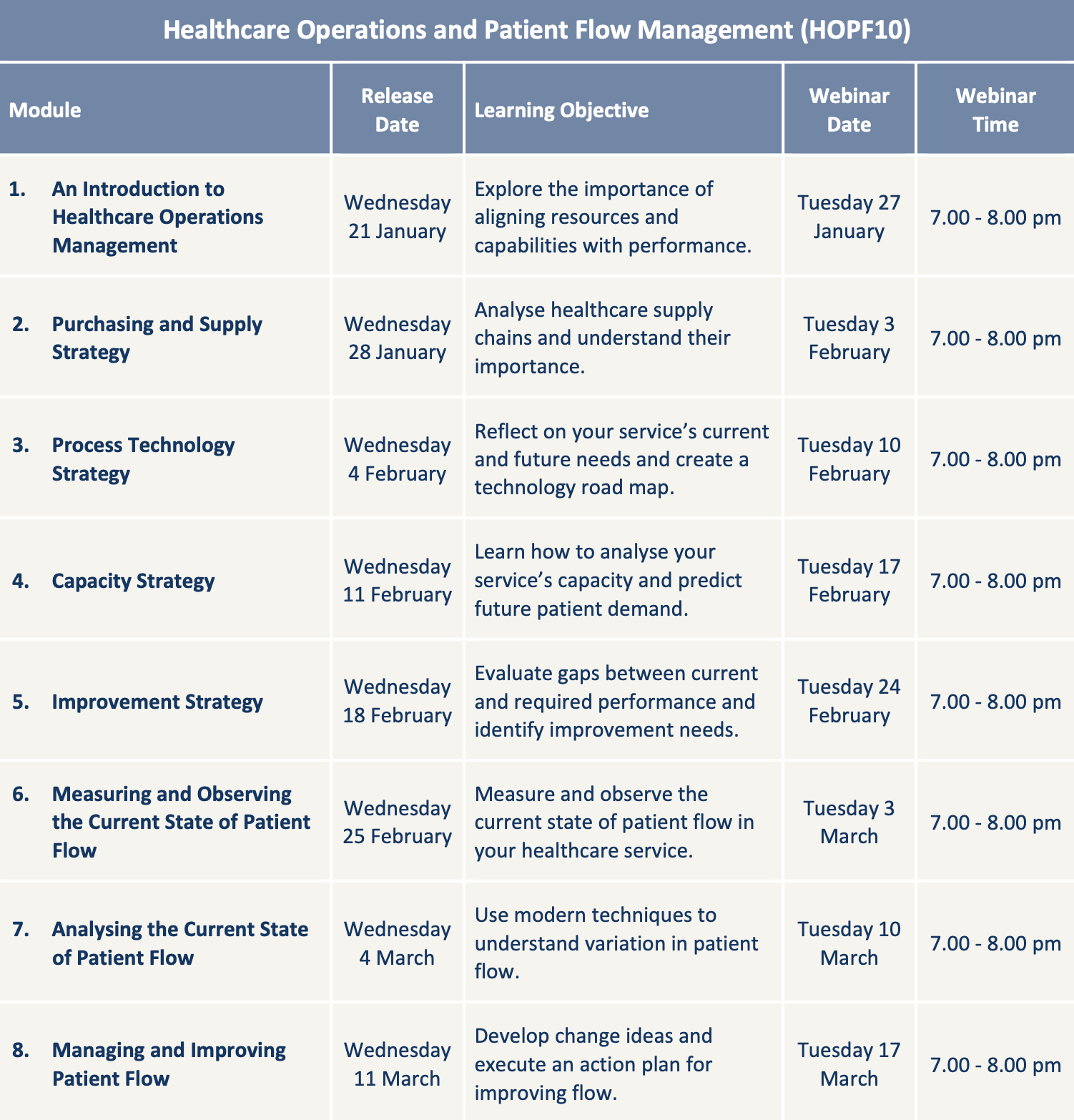 In Module 4, on capacity strategy, we discovered how important it is to be able to forecast patient demand and compare it with our service’s capacity. Now, in Module 6, we take a much deeper dive into this subject by learning techniques that can be used to measure and observe the current state of patient flow in our healthcare service. The topics covered in this module include:
