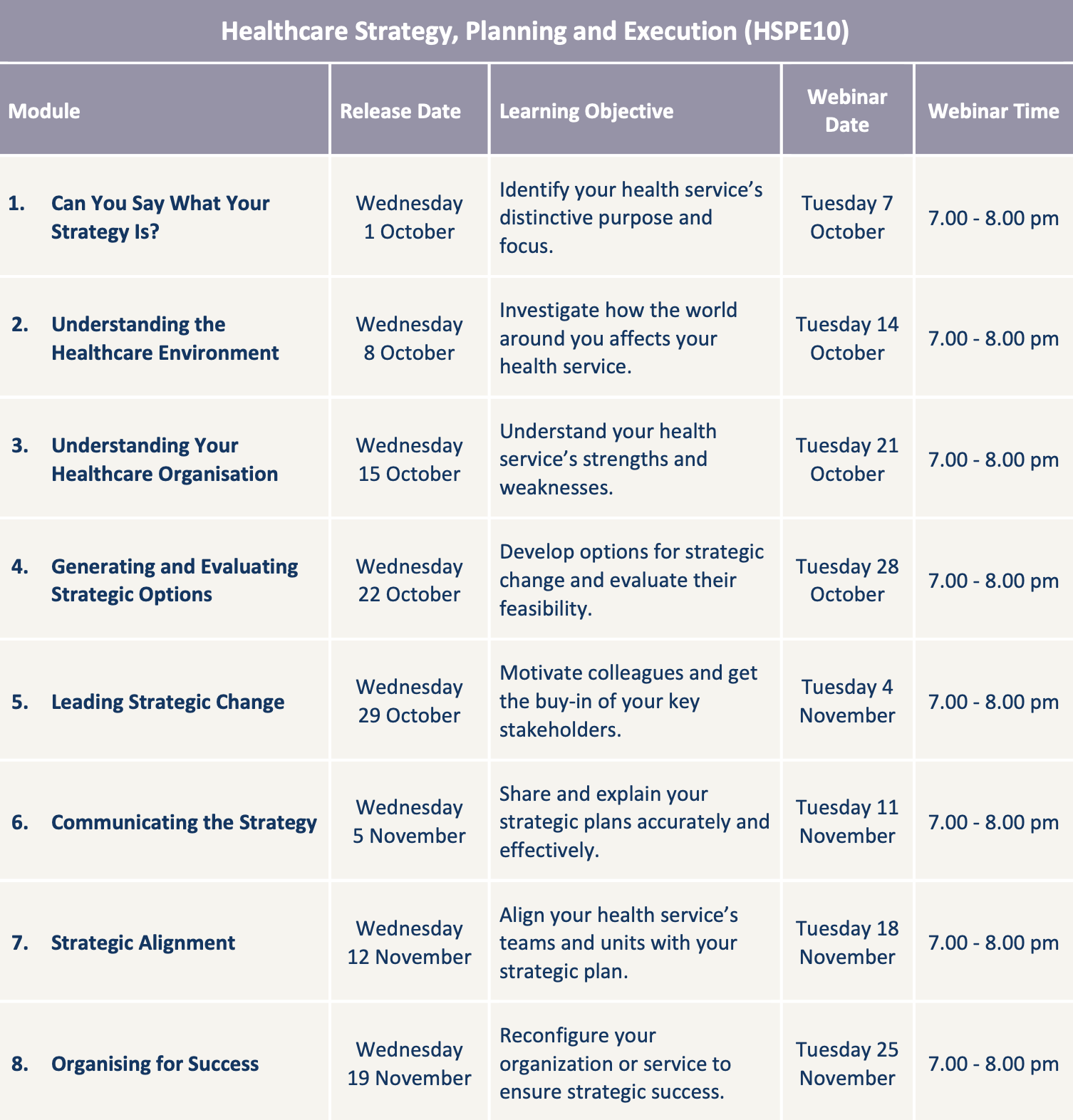 Using case studies from hospitals, clinics and healthcare systems, this course shows you how to design and execute a strategic project or plan in a healthcare organisation.